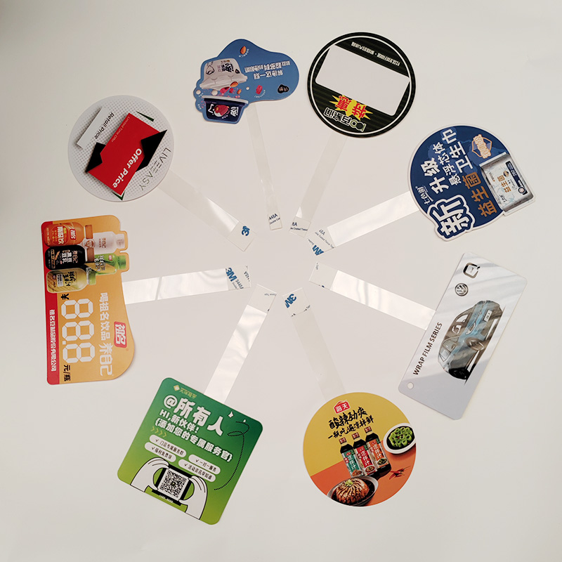 Shelf wobblers, also known as shelf talker, counter wobblers or card wobblers, is a POS marketing tool in a retail environment to attract people's attention. These shelf wobblers are usually used on shelves or display racks, or even on walls, windows, and anywhere else you can think of to stick them. When it is disturbed by the air, it can shake and swing to attract customers' attention.